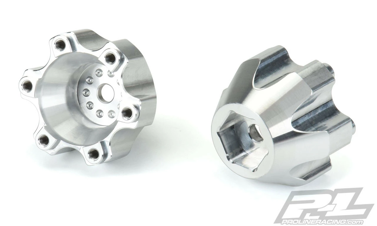 This pair of Pro-Line 6×30 to 14mm Aluminum Hex Adapters are the perfect upgrade for the Raid 6×30 Removable Hex Wheels. This hex adapter set is made of super strong aluminum instead of plastic for improved durability. This pack contains two 14mm Hexes made from clear anodized Aluminum and compatible with any of Pro-Lines 6×30 2.8″ wheels.
