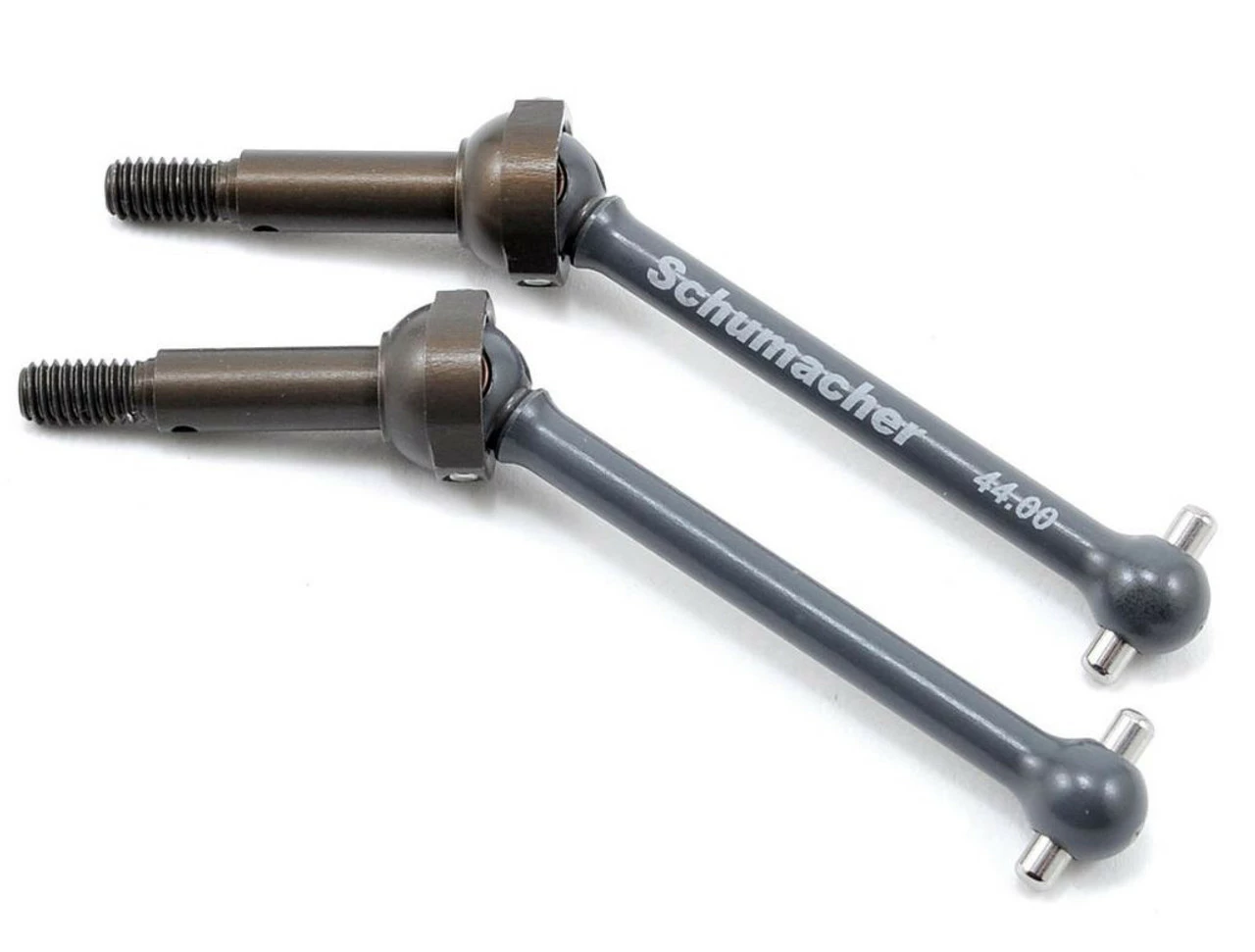 This is a pack of two optional Schumacher Mi5 Aluminum Rear Driveshafts. These are compatible with the Mi4CX and Mi5 vehicles and are precision machined from 7075-T6 aluminum material.