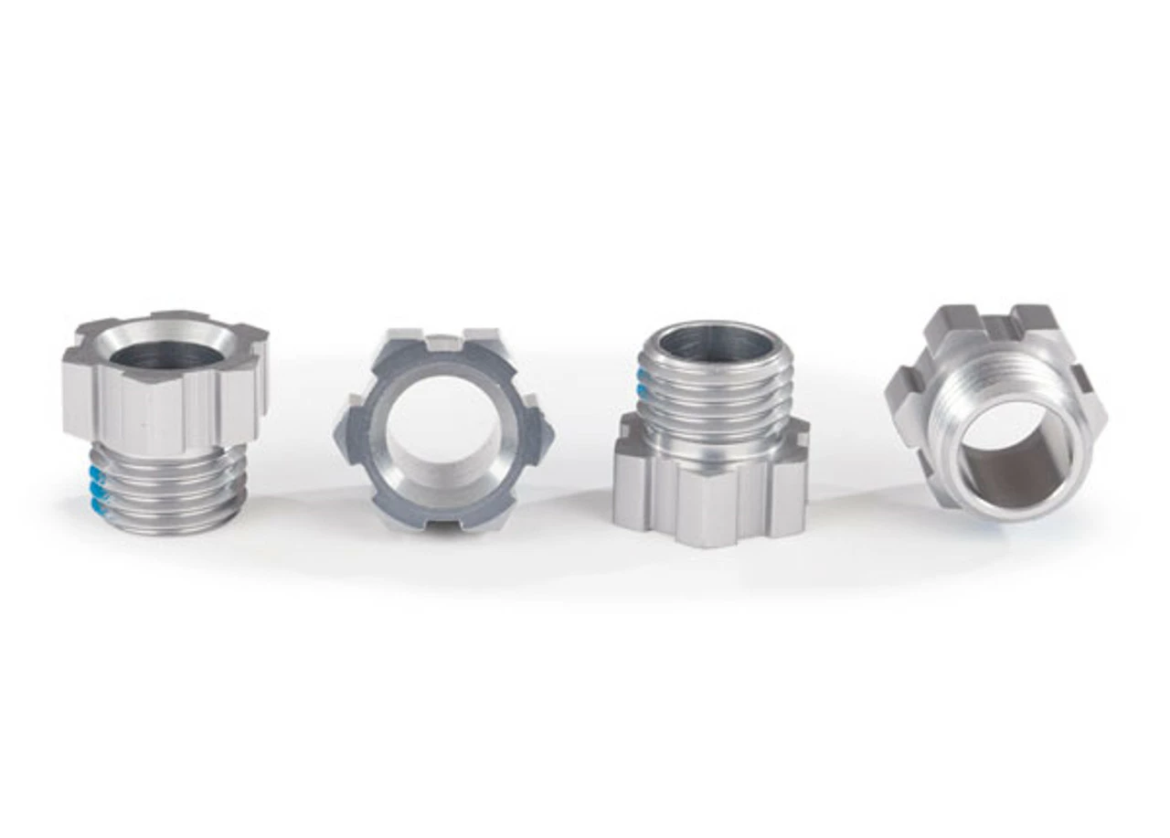 This is an optional upgrade set of Aluminum Stub Axle Nuts intended for the Traxxas Traxx TRA8880. These stub axle nuts have an anodized finish and machined from quality 6061-T6 aluminum to be stronger than stock parts.
